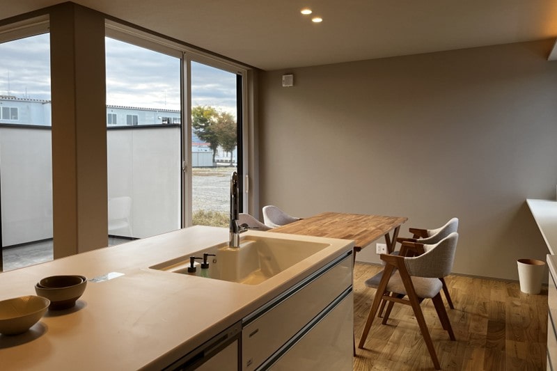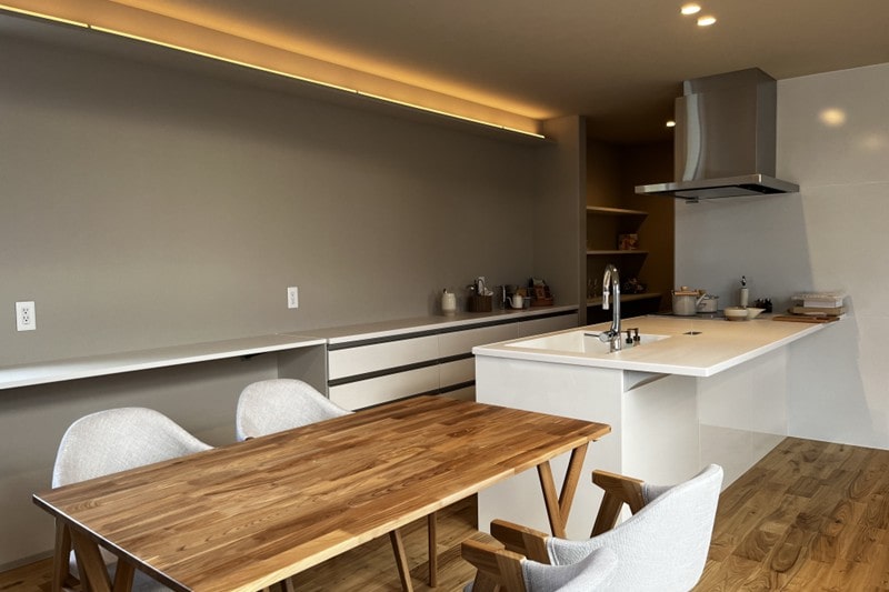 フルフラットキッチンが中心のコミュニケーションがとりやすいキッチン・ダイニング