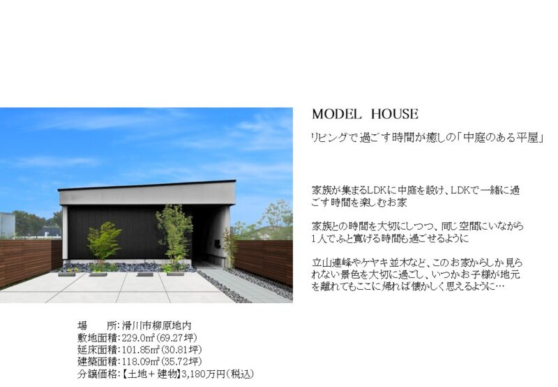 備 考ご好評につき、開催延長いたします!31坪3LDK・中庭のある平屋【分譲価格:税込 3,180万円(土地+建物)】